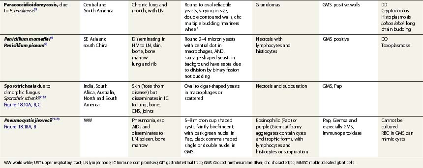 Specific infections are described in Tables 18.1 and 18.2, which emphasize the morphological diagnosis in direct smears and special stains. For a more detailed discussion of their microbiology, please refer to standard texts.59