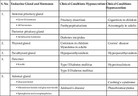 | S. No. | Endocrine Gland and Hormones | Clinical Conditions Hyposecretion | Clinical Conditions Hypersecretion |