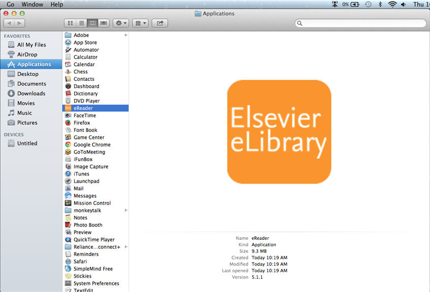 previously downloaded and installed Elsevier eLibrary Reader software.