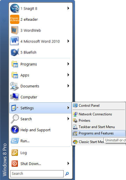 In the Control Panel, click Programs and Features.A list of currently installed programs is displayed in the Uninstall or change a Program